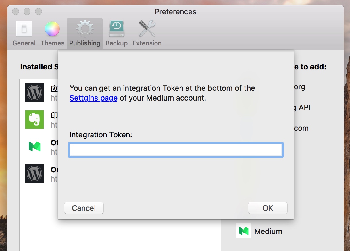 Click Settings page go to your Medium Settings page to create an Integration Token.