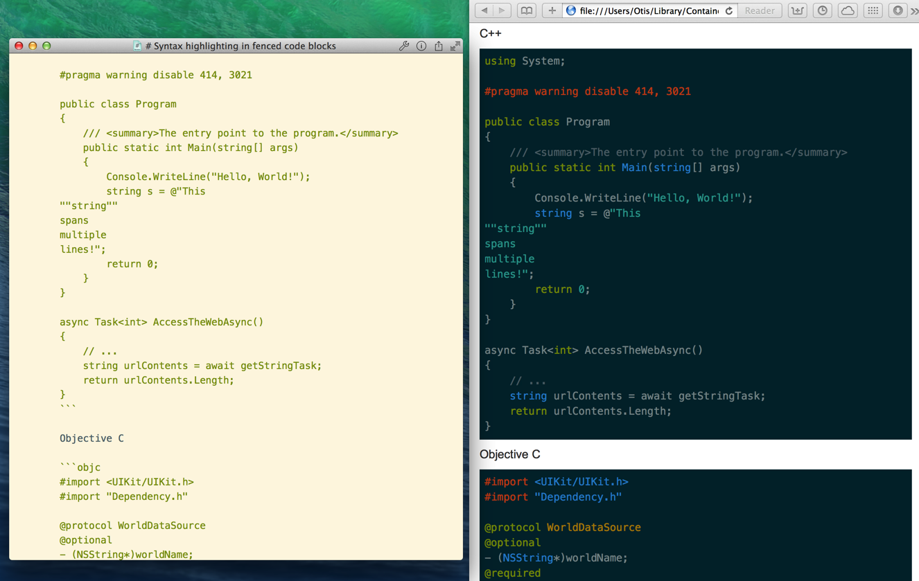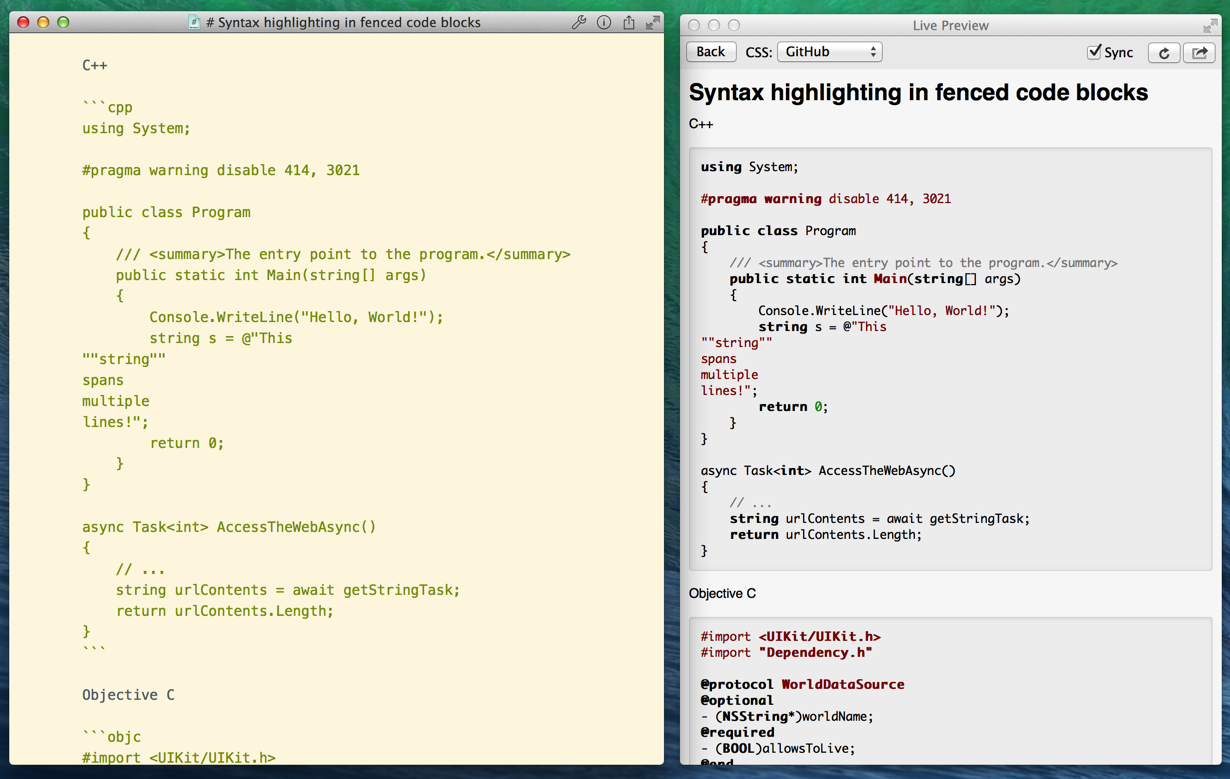 Syntax highlighting in fenced code blocks screenshot